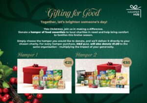 This Christmas, M&Z is proud to support local charities through our “Gifting for Good” Charity Hamper Campaign. Together, we can help bring comfort and joy to families in need during the festive season. By donating a Hamper of Food Essentials to a local charity, you’ll be helping brighten someone’s day, and to make your generosity go even further, M&Z will contribute €1 for every hamper purchased to the same charity.